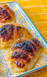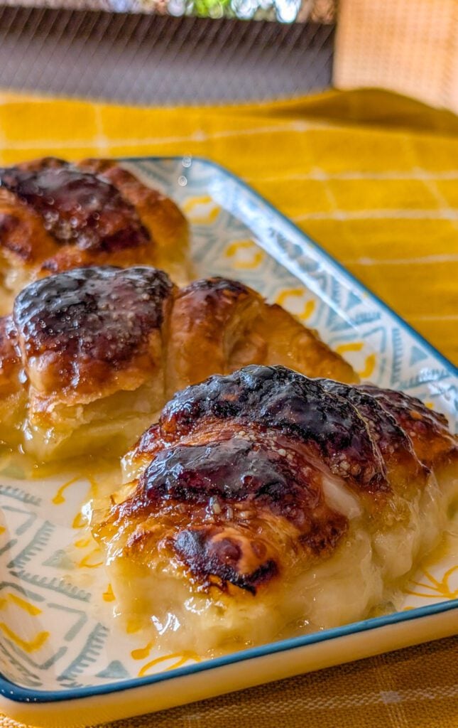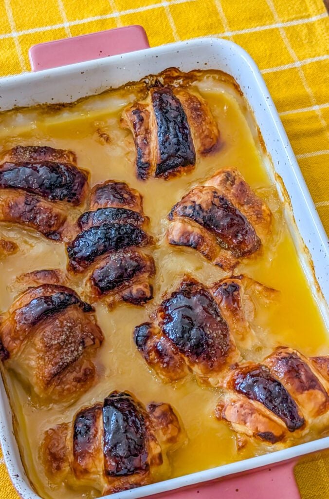 They’re best enjoyed warm when the syrup is bubbling and the pastry is golden.