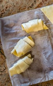 - Open the crescent roll cans and carefully separate the dough into individual triangles.