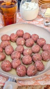 - Shape the mixture into small, 1-inch meatballs. Heat a large nonstick skillet over medium-high heat and brown the meatballs on all sides. Once browned, remove the meatballs from the skillet and set them aside on a plate.