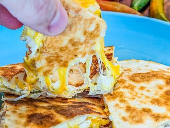 A basic quesadilla is like a grilled cheese sandwich but with a flour tortilla in place of the bread. The following recipe takes it up a notch though, …