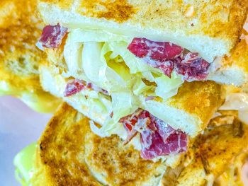 This delicious reuben sandwich is generously loaded with plenty of sliced corned beef, melted Swiss cheese, thousand island dressing, and sauerkraut, …