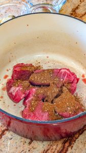 - In a large oven-safe pot or Dutch oven, heat the olive oil over medium-high heat. Season the chuck roast with salt and pepper, then sear it for 3–4 minutes on each side until browned. Remove the roast and set aside.