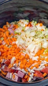 - While the ham hocks are simmering, heat olive oil in a skillet over medium heat. Sauté the onions, celery, and carrots until softened, about 5–7 minutes. Add the minced garlic and cook for another 30 seconds.