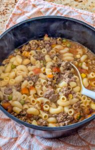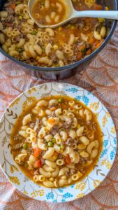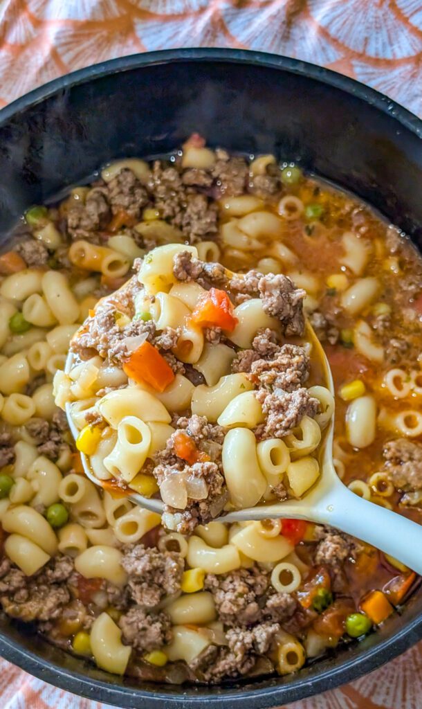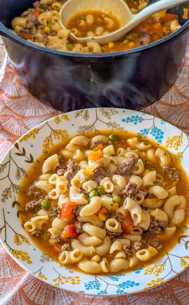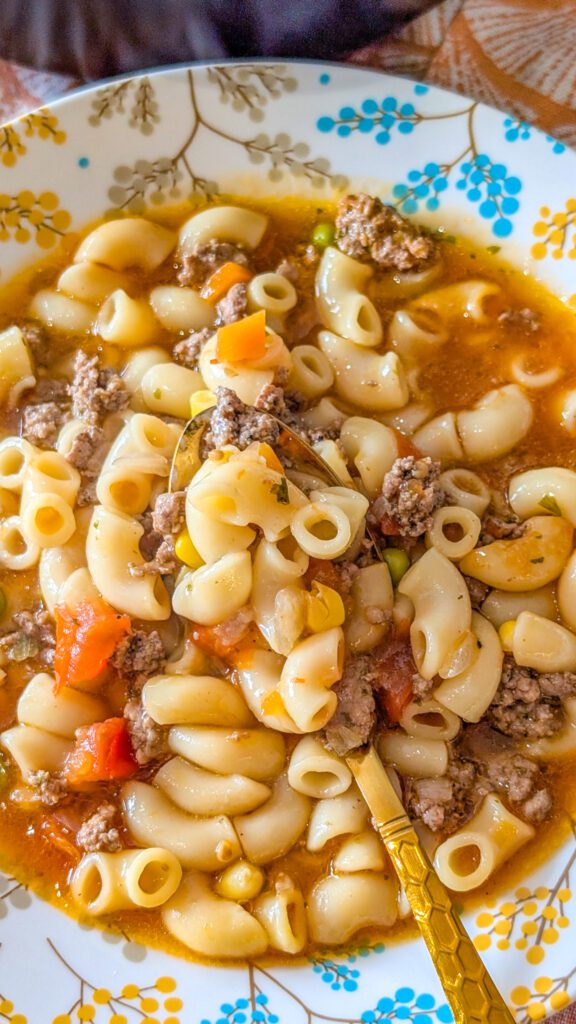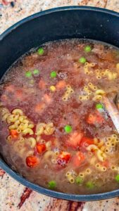 It’s hearty, flavorful, and packed with tender beef, vegetables, and perfectly cooked macaroni, all swimming in a rich, savory broth. Unlike canned or takeout soups, making this from scratch allows you to control the flavors, textures, and freshness of every ingredient.