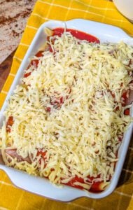 8. Sprinkle mozzarella cheese evenly over the top.