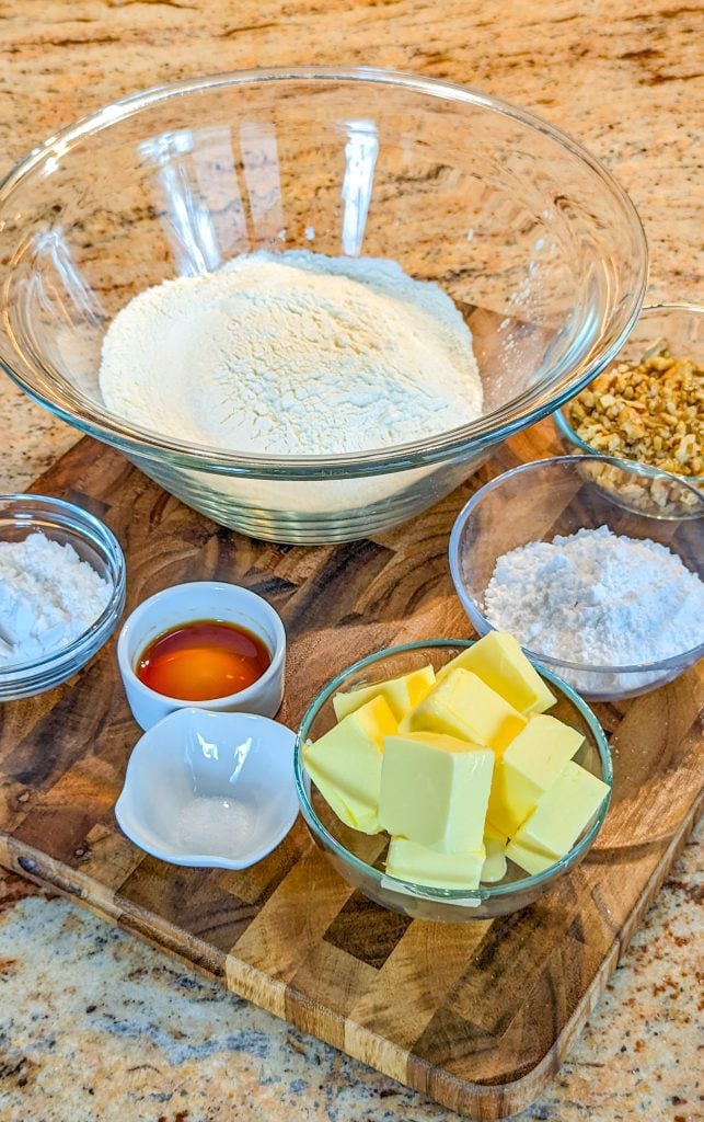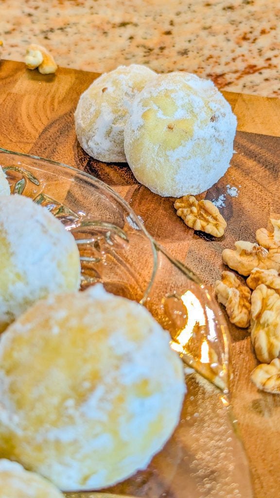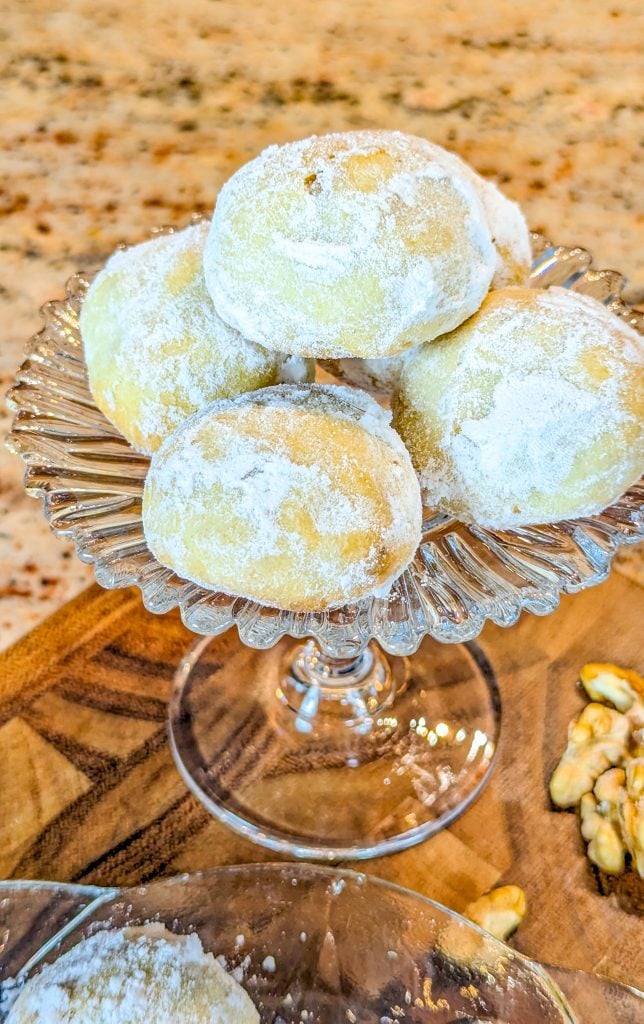 Other names for these sweet little treats include Italian wedding cookies, Russian tea cakes, Mexican wedding cookies, and butter balls. Snowballs are another name for these which is very apt, considering their charming powdered sugar coating!