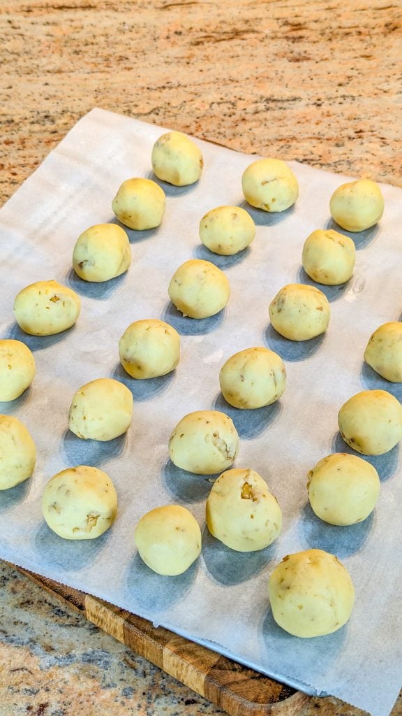 - Use a 1-tablespoon scoop to make 30 balls of dough.