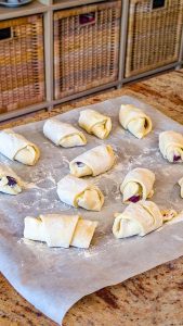 - Unroll the crescent roll dough and separate it into individual triangles.