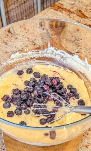 - Gently fold in the blueberries, making sure they’re evenly distributed throughout the batter.