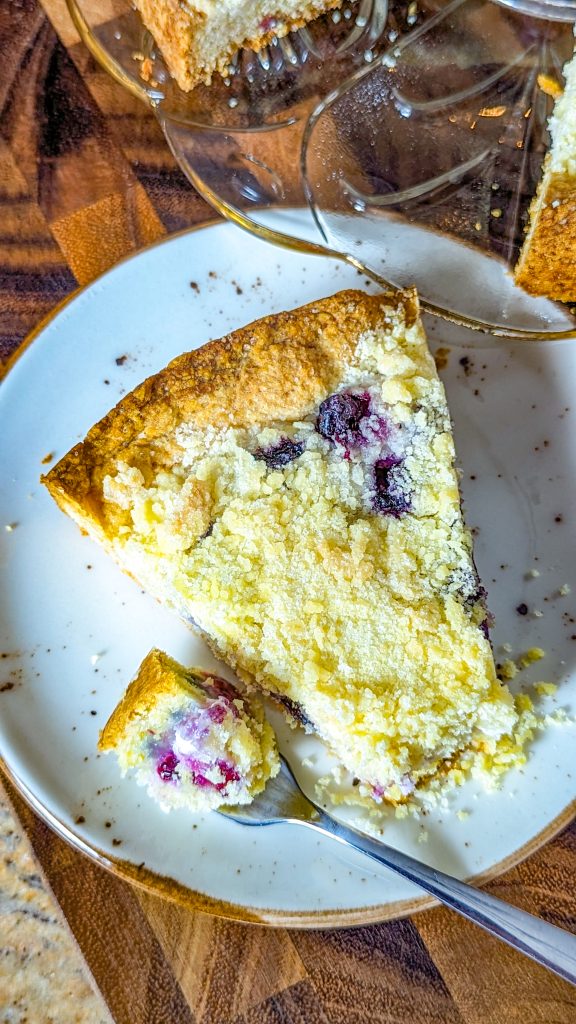 Enjoy this cake for brunch or pair a slice with a cup of coffee or tea. That’s why it’s called a coffee cake by the way – it goes so well with a cup of Joe! Everybody loves it too, from kids to grownups. Full-fat cream cheese offers the richest flavor and of course you’ll want to use fresh blueberries for this.