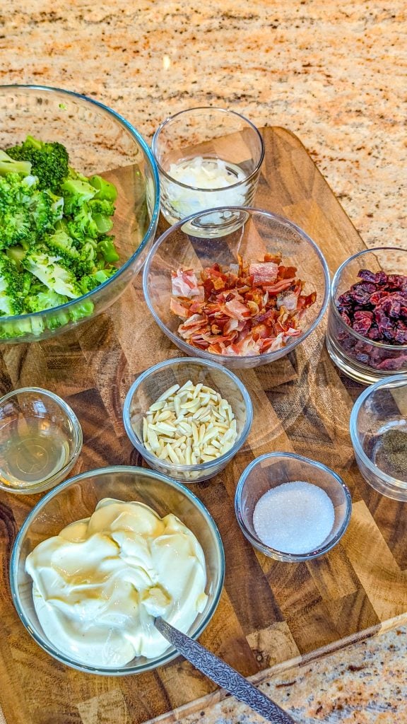 Swap the sliced almonds for pine nuts, pecans or sunflower seeds. You can add shredded sharp cheddar or blue cheese or feta crumbles if you like. Or swap the cranberries for raisins. Another idea is to swap half the broccoli for cauliflower.