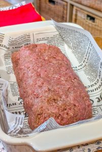 - Shape the mixture into a loaf. Spread one portion (1/3) of the brown sugar-ketchup mixture on top of the loaf.