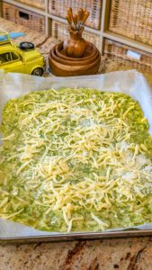 - Press the zucchini mixture evenly into the prepared baking dish, creating a flat, compact layer.