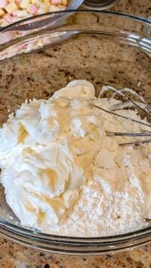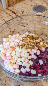 - Stir in the cherry pie filling, mini marshmallows, and chopped pecans (if using), mixing just until evenly combined.