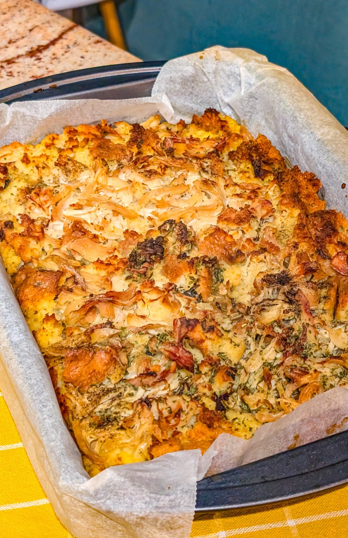 This recipe is easy to customize. Add sautéed celery and onions for extra flavor, or mix in a little cream of mushroom soup for a deeper, savory taste. You can also use turkey instead of chicken, making this a great way to use up holiday leftovers. For a touch of herbs, add poultry seasoning, thyme, or sage to the dressing.