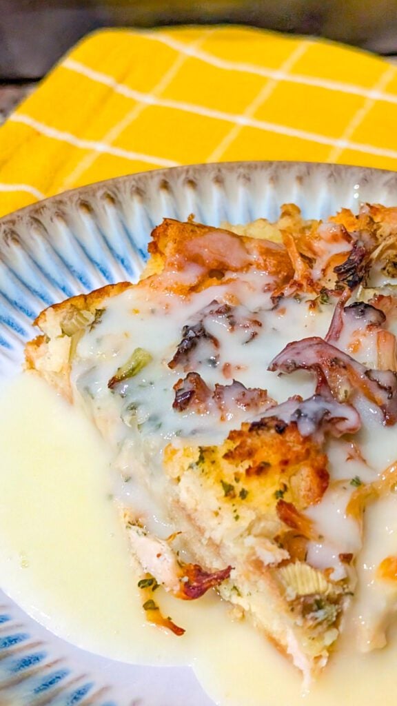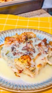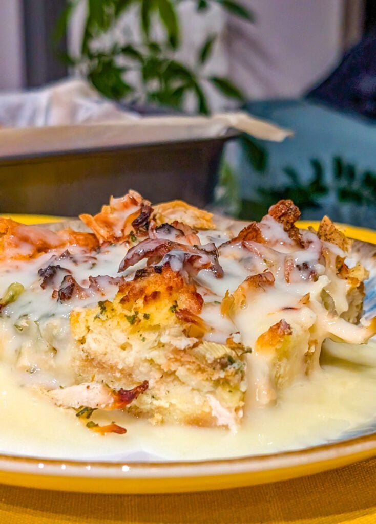 What I love most about this casserole is how it captures the flavors of a holiday meal without all the extra work. The dressing soaks up the savory broth and creamy sauce, while the chicken keeps every bite hearty and satisfying. It’s simple, cozy, and unapologetically comforting. There’s no need to dress it up or overthink it—this recipe shines because of its simplicity and nostalgic flavor.