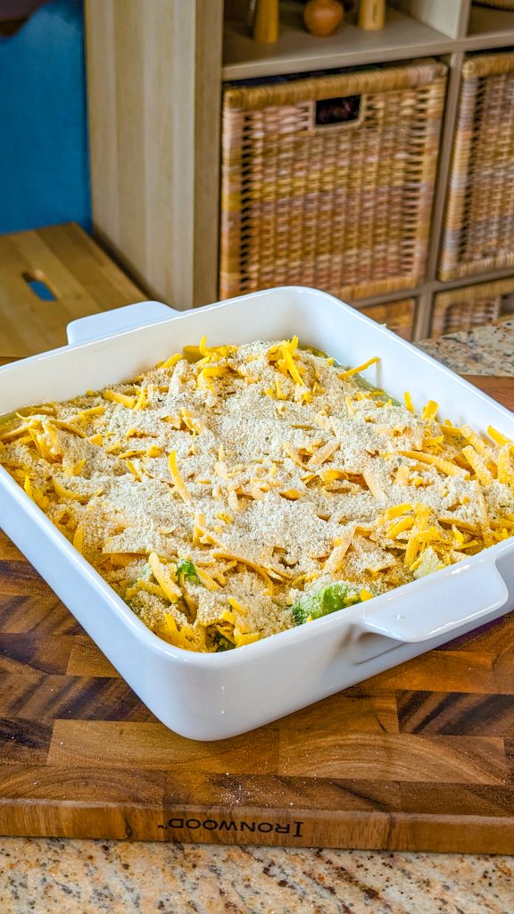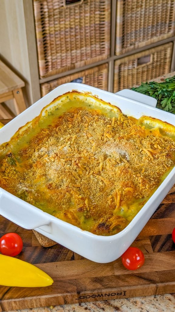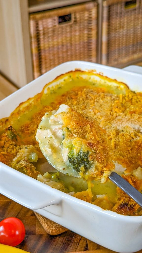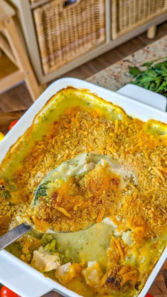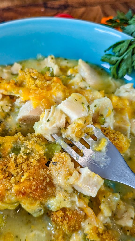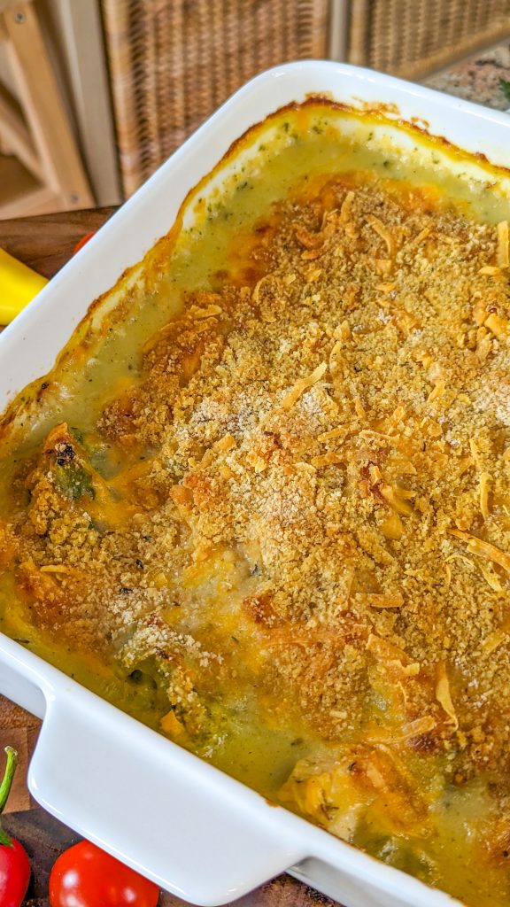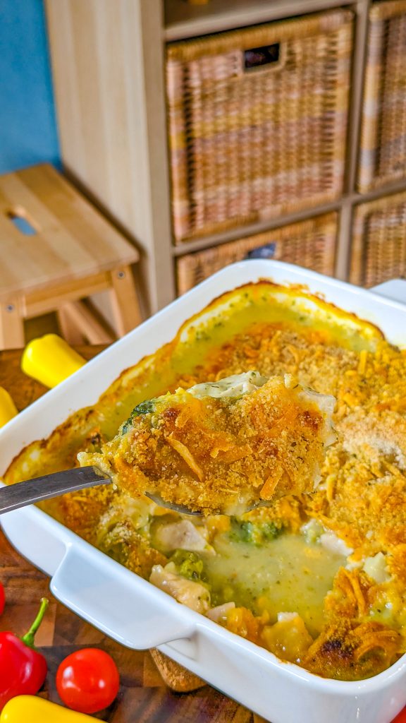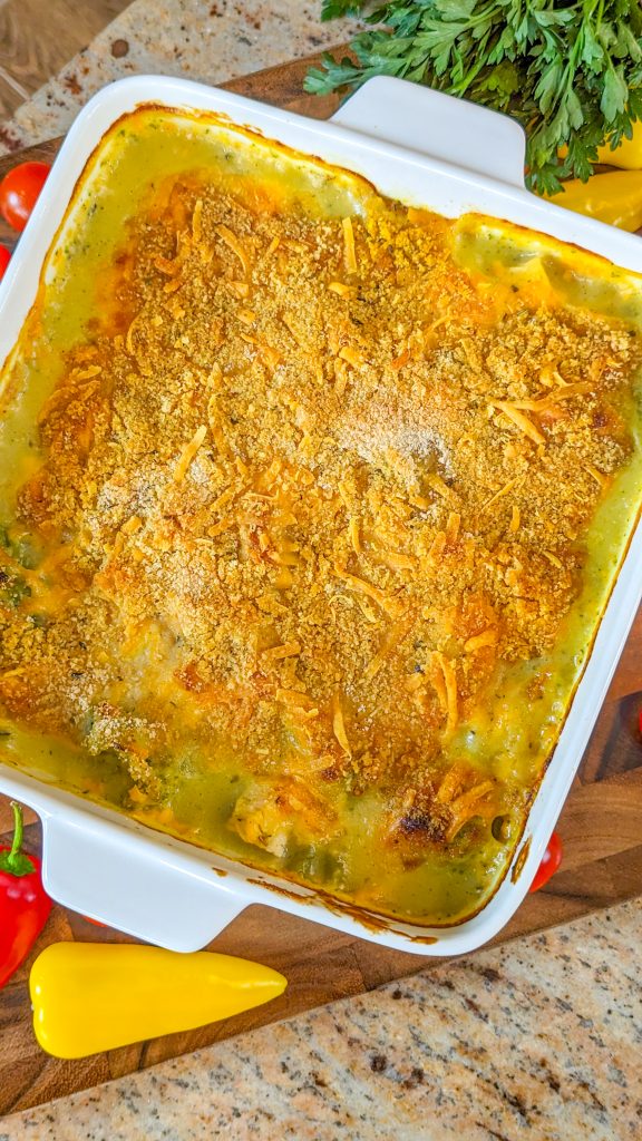 This creamy casserole has an indulgent, cozy flavor but it’s actually low in calories compared to most casserole recipes. It’s really easy to make too.