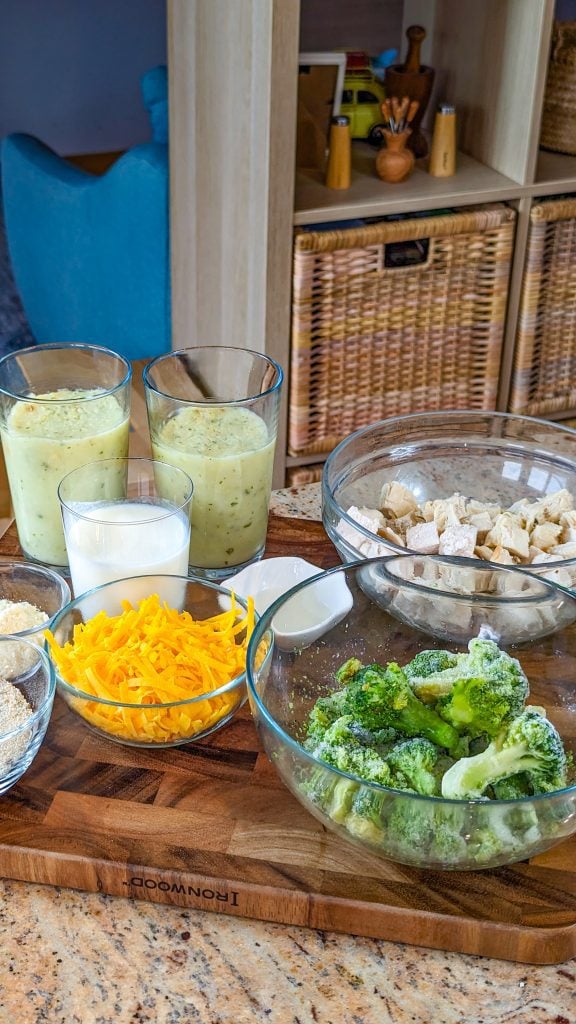 Use cooked broccoli and cooked chicken (maybe leftover rotisserie chicken) to cut down on the prep time.