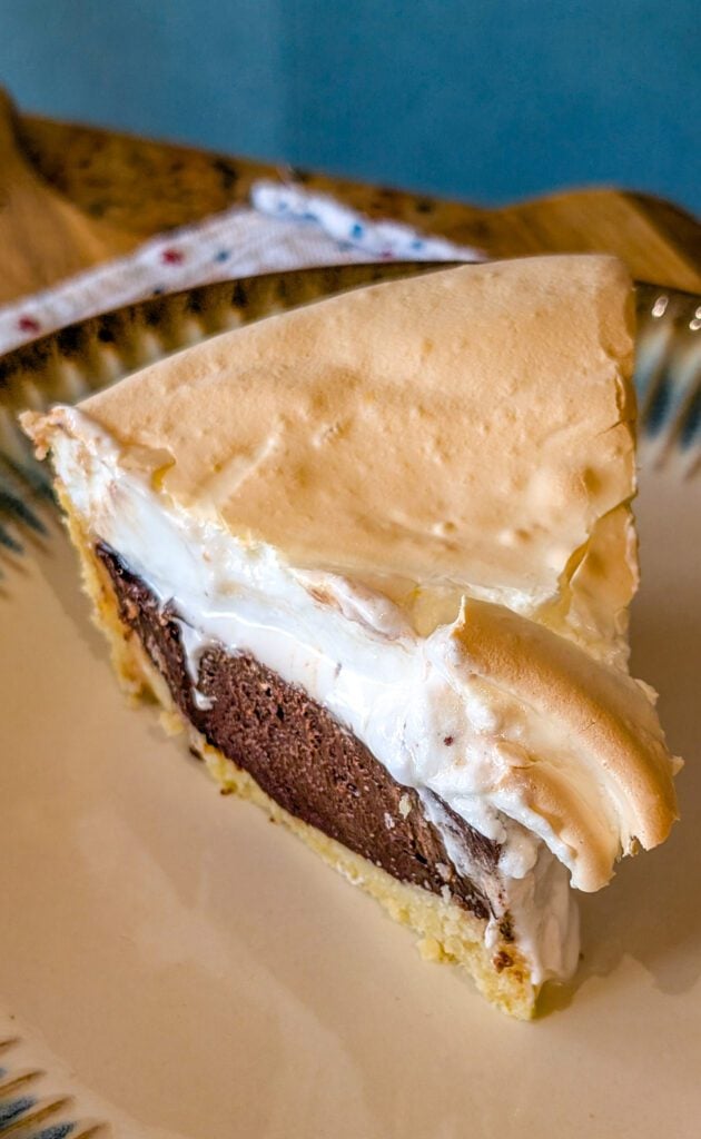 What makes this dessert so special is the combination of textures. The crust provides a firm, buttery base, the chocolate filling is smooth and velvety, and the meringue is light and slightly crisp on the outside. When baked just right, the meringue forms beautiful golden peaks that make the pie as stunning as it is delicious.