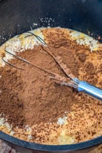 - Add the chocolate chips and chopped dark chocolate. Continue stirring until the chocolate melts completely and the mixture comes to a gentle boil. Let it boil for 1 minute, then remove from heat. Stir in the vanilla extract.