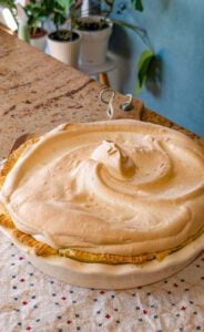 - Place the pie in the oven and bake for 15 minutes, or until the meringue is lightly golden on top.