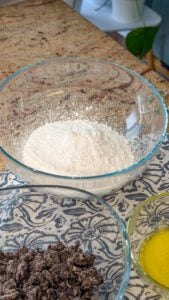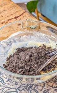 - In a small bowl, mix together the cinnamon, cocoa powder, granulated sugar, and crushed Oreo cookies.