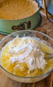 - Make sure the crushed pineapple is very well drained to prevent the cheesecake from becoming too soft. Add the pineapple to the mixture and stir gently until evenly incorporated.