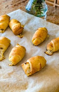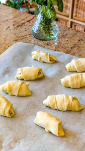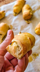 - Prepare the crescent rolls: Unroll the crescent dough and separate it into individual triangles.