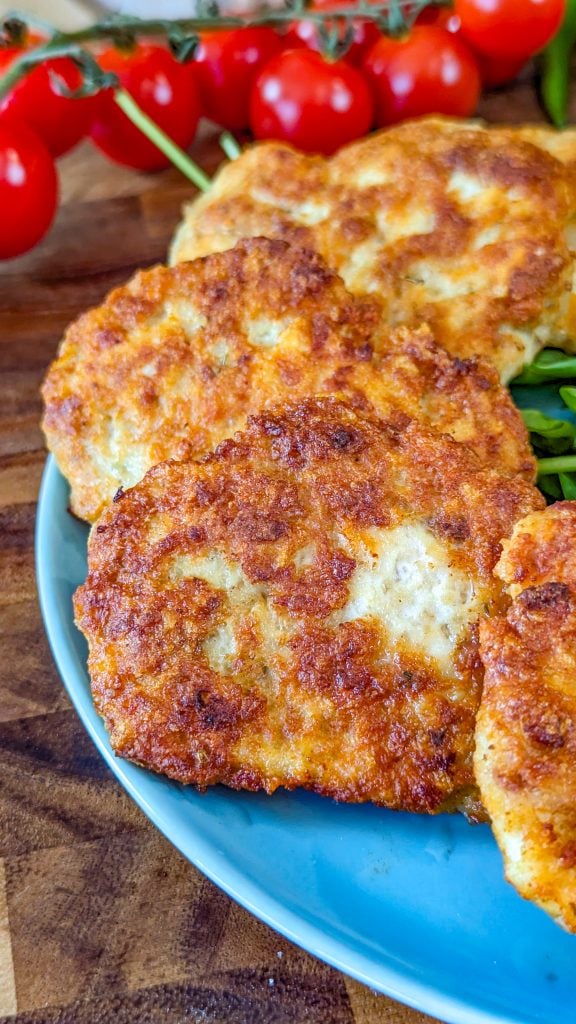 These chicken fritters are really easy to make. You just need to combine chicken with breadcrumbs, eggs and seasonings, and then shape fritters and fry them until crispy.