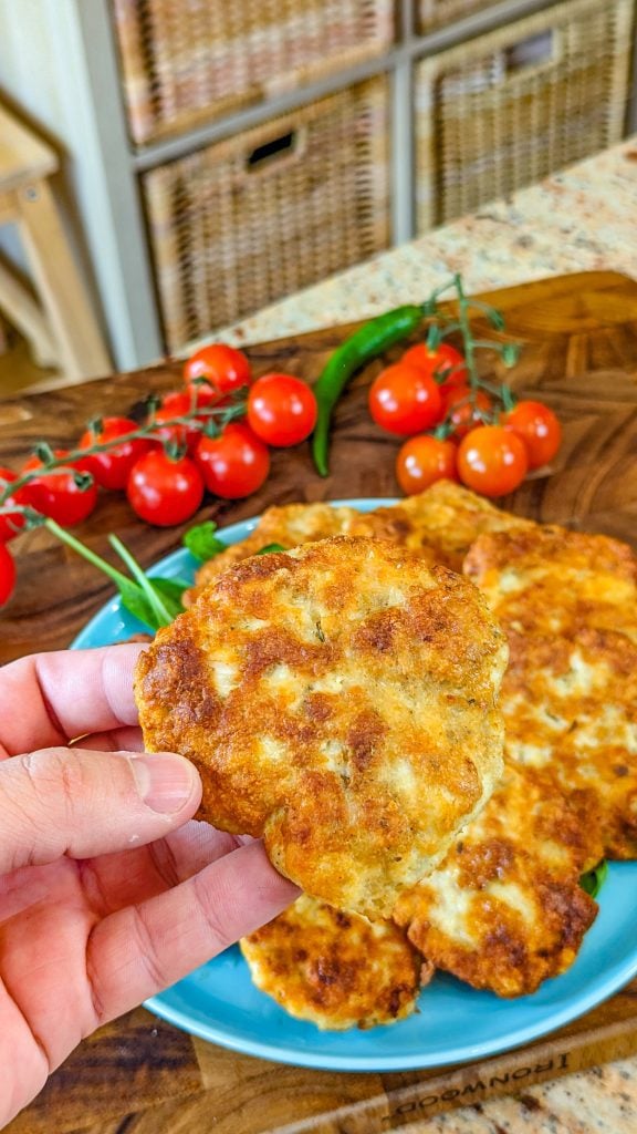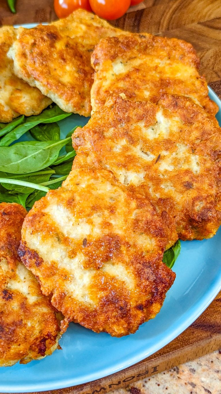 These are cooked in oil in a skillet until they’re smelling amazing and have a crispy golden brown crust. Whether you pair them with mashed potatoes and broccoli or make them smaller in size and enjoy them as a snack with your preferred dipping sauce, you just can’t go wrong with this recipe.