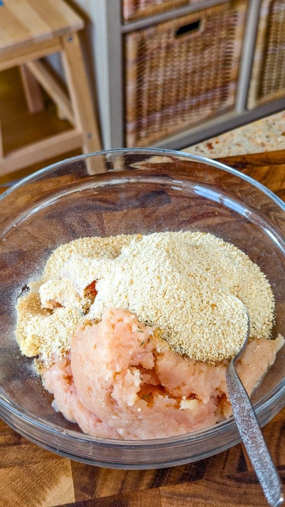 Sub turkey for the chicken or even try tuna or salmon. Whatever protein you opt for, make sure it’s very well drained before you start, otherwise the fritters will just fall apart in the pan. You can also use seasoned bread crumbs but if you’re doing that you might not need much, if any, additional salt and pepper.