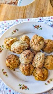 These stuffing balls store beautifully. You can make a large batch ahead of time and freeze them raw, arranging them on a baking sheet so they don’t stick together. Once frozen, transfer them to a freezer-safe bag for up to three months. When ready to bake, simply pop them in the oven, and you’ll have crispy, golden bites as if they were freshly made. Leftovers from dinner can be stored in an airtight container in the fridge for up to four days and reheated in the oven to retain crispiness.