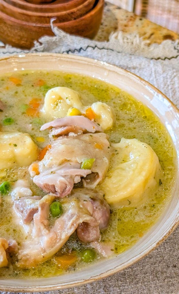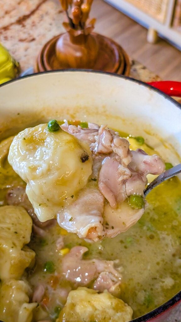 Leftovers store very well, making this an ideal make-ahead meal. Store cooled chicken and dumplings in an airtight container in the refrigerator for up to 3–4 days. For freezing, portion into freezer-safe containers and freeze for up to 3 months. Thaw overnight in the refrigerator and reheat gently on the stovetop, stirring occasionally to maintain the creamy consistency of the dumplings.