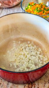 - Layer the diced onion in the bottom of the crockpot.