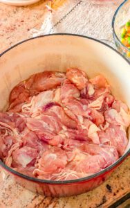 - Pour 2 cups of chicken broth over the chicken and soup mixture.
