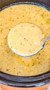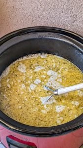 - Pour in the heavy cream and stir again. Let the soup cook for another 15–30 minutes on low to heat through and blend flavors.