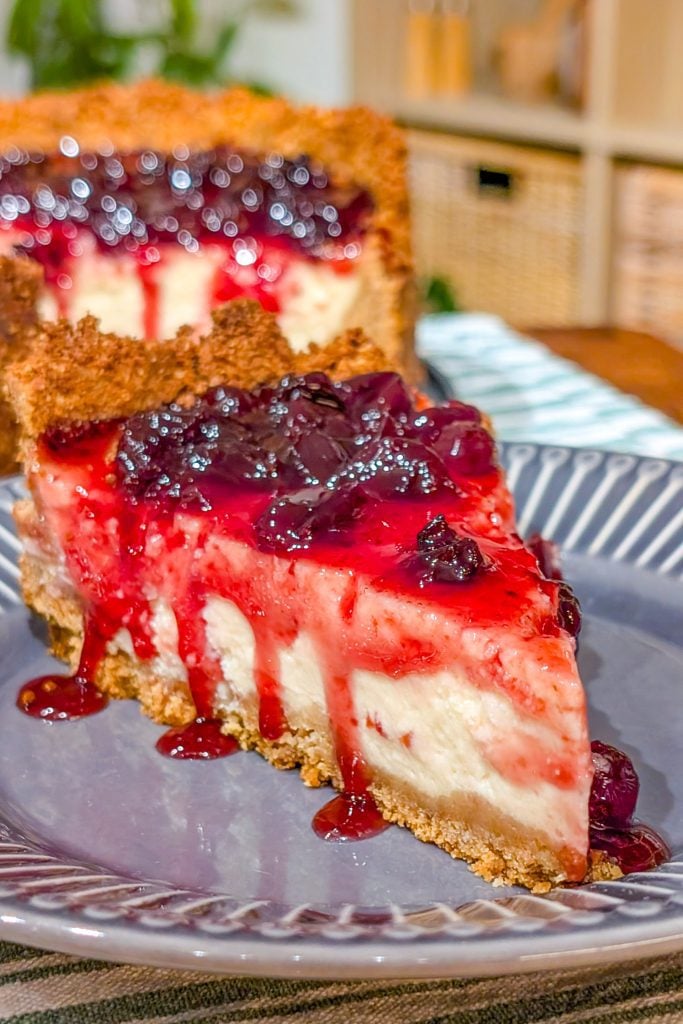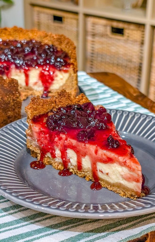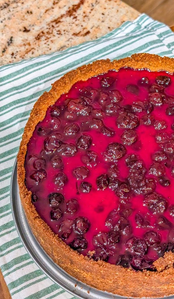 I love this recipe because it perfectly balances richness and freshness. The baked cheesecake filling is creamy and smooth, but not overly heavy, while the homemade blueberry jam adds a layer of bright, fruity flavor that cuts through the richness. It’s also very forgiving—the crust stays firm, the cheesecake bakes evenly, and the topping can be adjusted for sweetness or tartness depending on your preference. Every forkful feels indulgent yet refreshing, making it a dessert that everyone can enjoy.