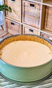 - Turn off the oven and crack the door open. Leave the cheesecake in the oven for another hour to cool gradually.