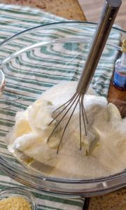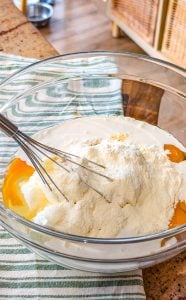 - Add the eggs, heavy whipping cream, flour, vanilla extract, and lemon zest. Mix until creamy and well combined.