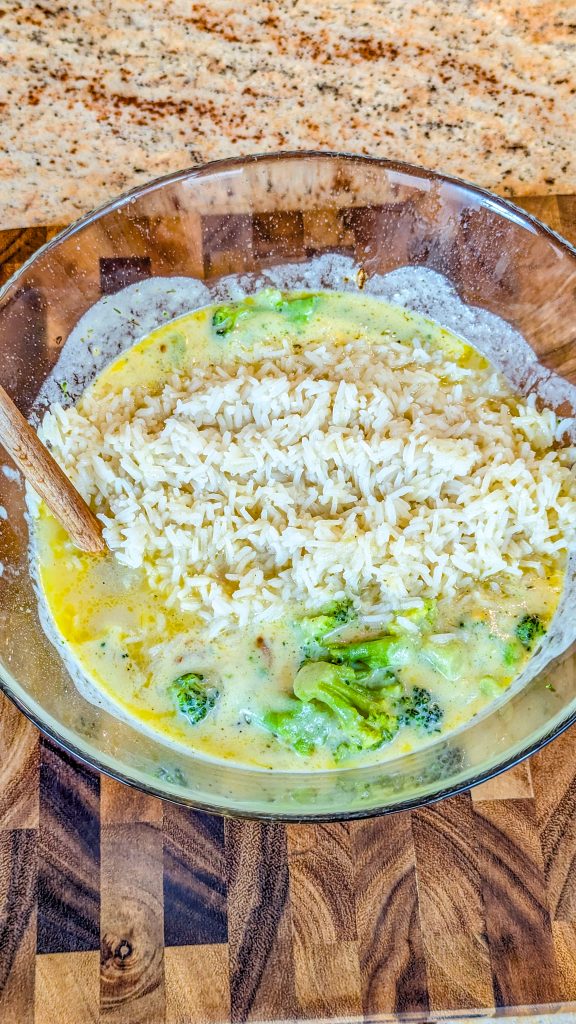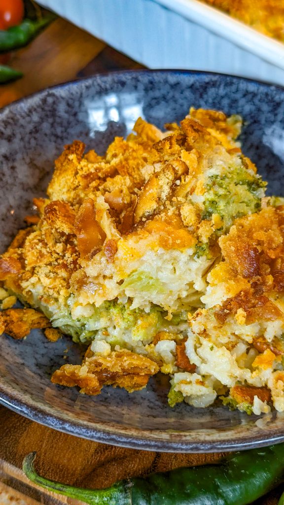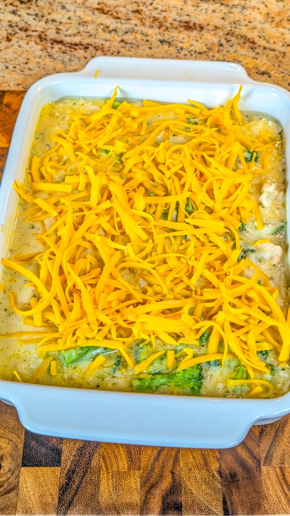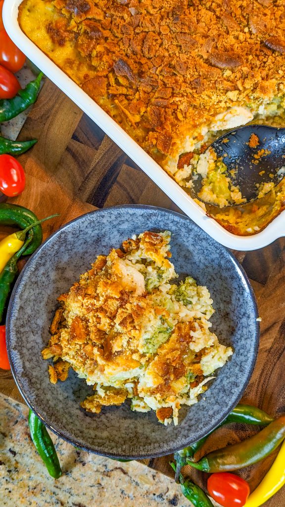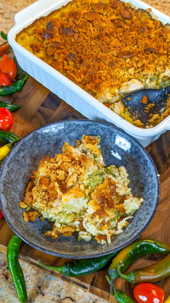 You can add other vegetables to this, such as carrots, mushrooms and zucchini for example. If you’re using frozen broccoli in place of fresh, just make sure it’s completely thawed and patted dry with paper towels before use, otherwise it will make the casserole watery. To make the casserole low carb, omit the rice.