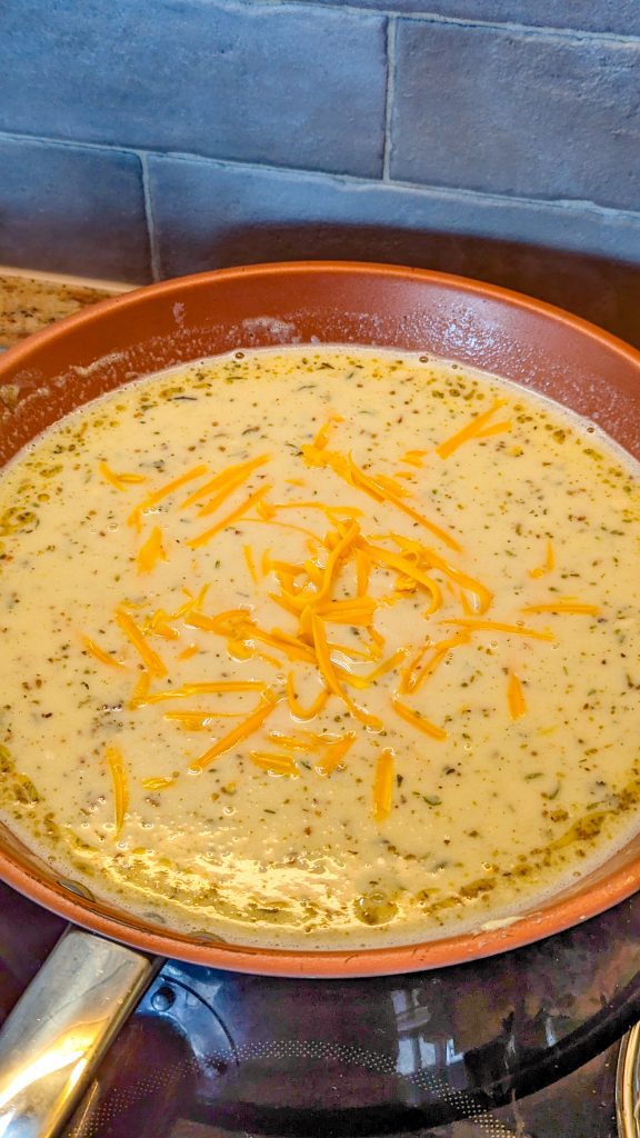 - Turn the heat down and mix in 1¼ cups of the cheese.