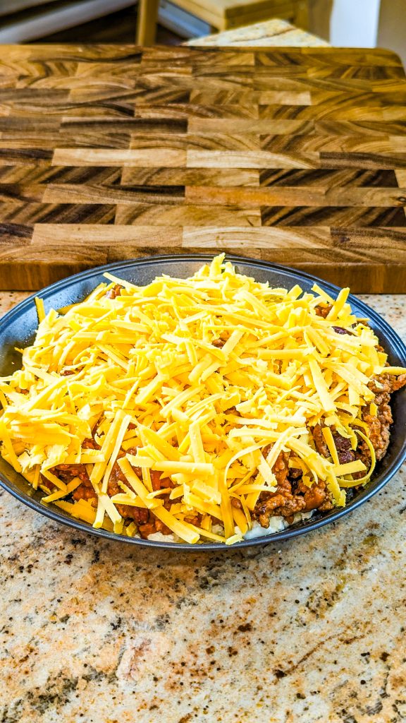 - Sprinkle shredded cheddar on top.