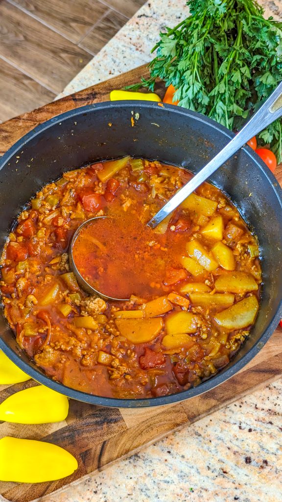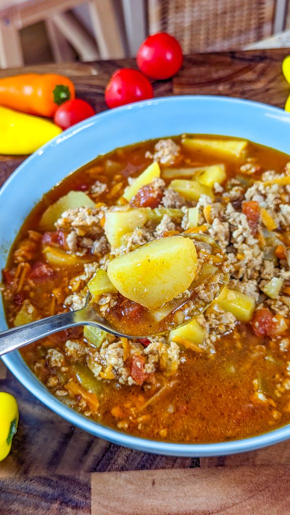 This delicious hamburger soup is truly delicious. It’s a cozy blend of ground beef, vegetables, herbs, and a tangy tomato sauce.