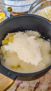 - In a saucepan over medium heat, combine the crushed pineapple (with its juice) and the granulated sugar. Bring the mixture to a gentle boil, stirring occasionally until the sugar is fully dissolved.