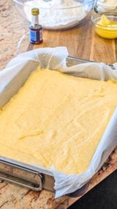- Preheat your oven according to the directions on the cake mix box. Lightly grease an 11×7-inch baking pan with nonstick spray.