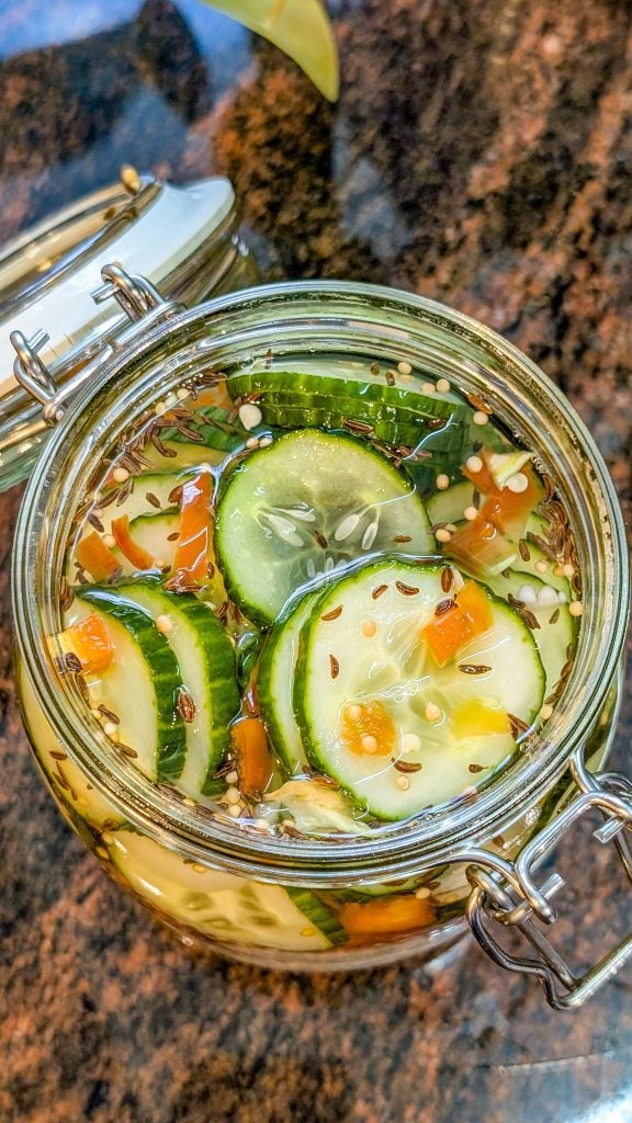 The ease of customization is one of the best things about fresh pickled cucumbers. For traditional dill pickles, add fresh dill or garlic. Add mustard seeds or red pepper flakes to give them some zing. For a milder, slightly sweeter flavor, use apple cider vinegar instead of white vinegar. For a little extra zing, you can also try adding thin slices of onions or jalapeños.