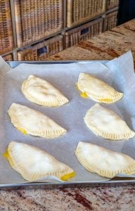 - Arrange the pies on the prepared baking sheet and bake for 20–25 minutes, or until golden brown and crisp.
