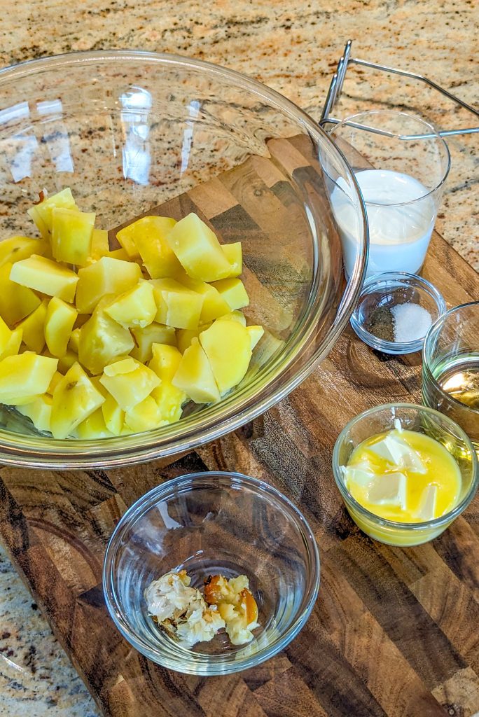 You don’t need a potato ricer to make the mashed potatoes. You can use a regular potato masher if that’s what you have. Roasting the garlic is what helps set this mashed potatoes recipe apart from others. Roasted garlic adds such an incredible depth of flavor to the dish.