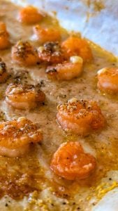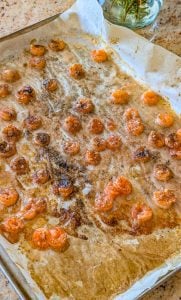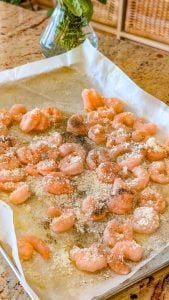 - Spread the shrimp in a single layer on the prepared baking sheet, making sure they aren’t overlapping to ensure even cooking.