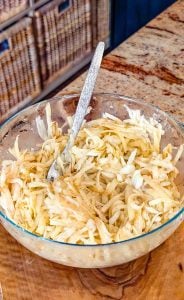 1. Gradually add the egg mixture to the potato and onion mixture, stirring until well combined and evenly coated.